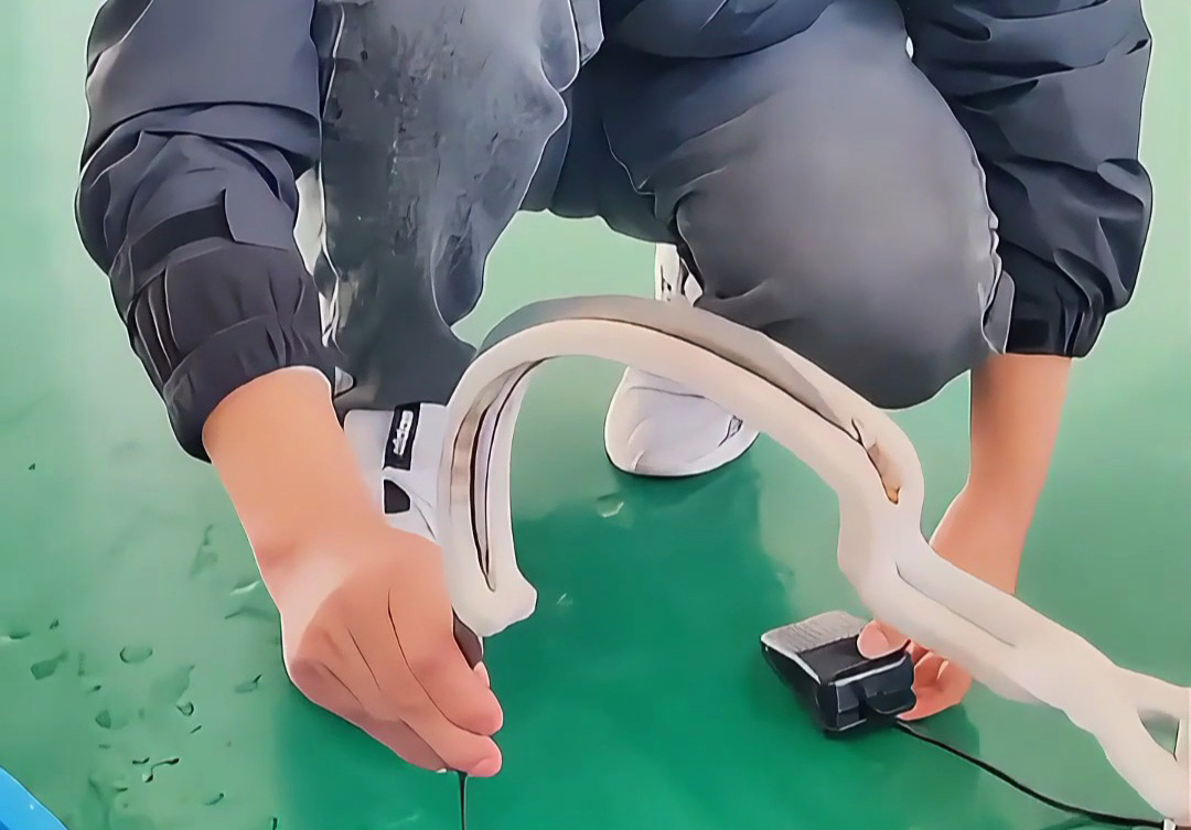传统明火淬火后,镰刀直接扔入水 / 油中冷却,冷热冲击大,易产生裂纹;而海拓超高频感应淬火搭配分段式喷淋冷却系统:
