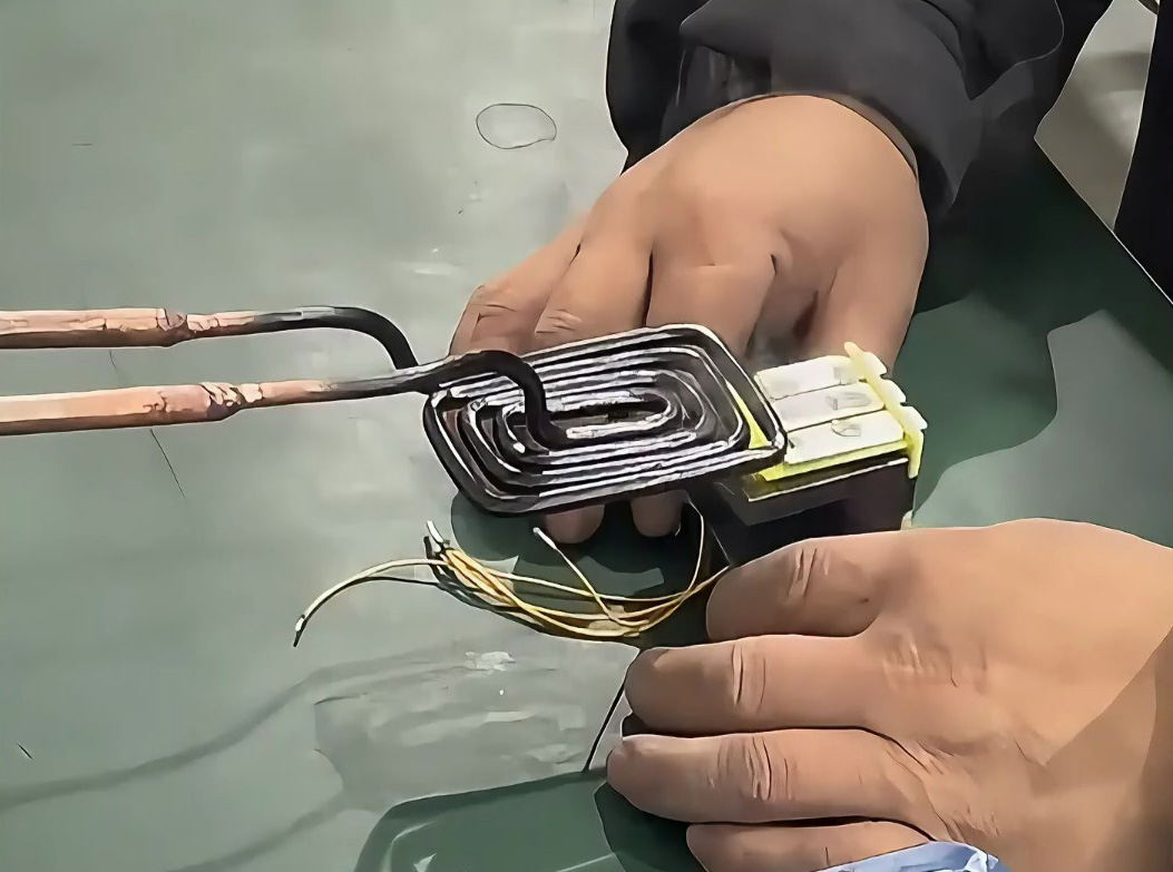 高频加热机,用于触点感应锡焊。局部精准加热,温度均匀可控,不烫坏周边元器件,焊点饱满牢固、不虚焊。加热速度快、操作简单,安全无明火,效率高、品质稳定,是触点锡焊的理想选择。