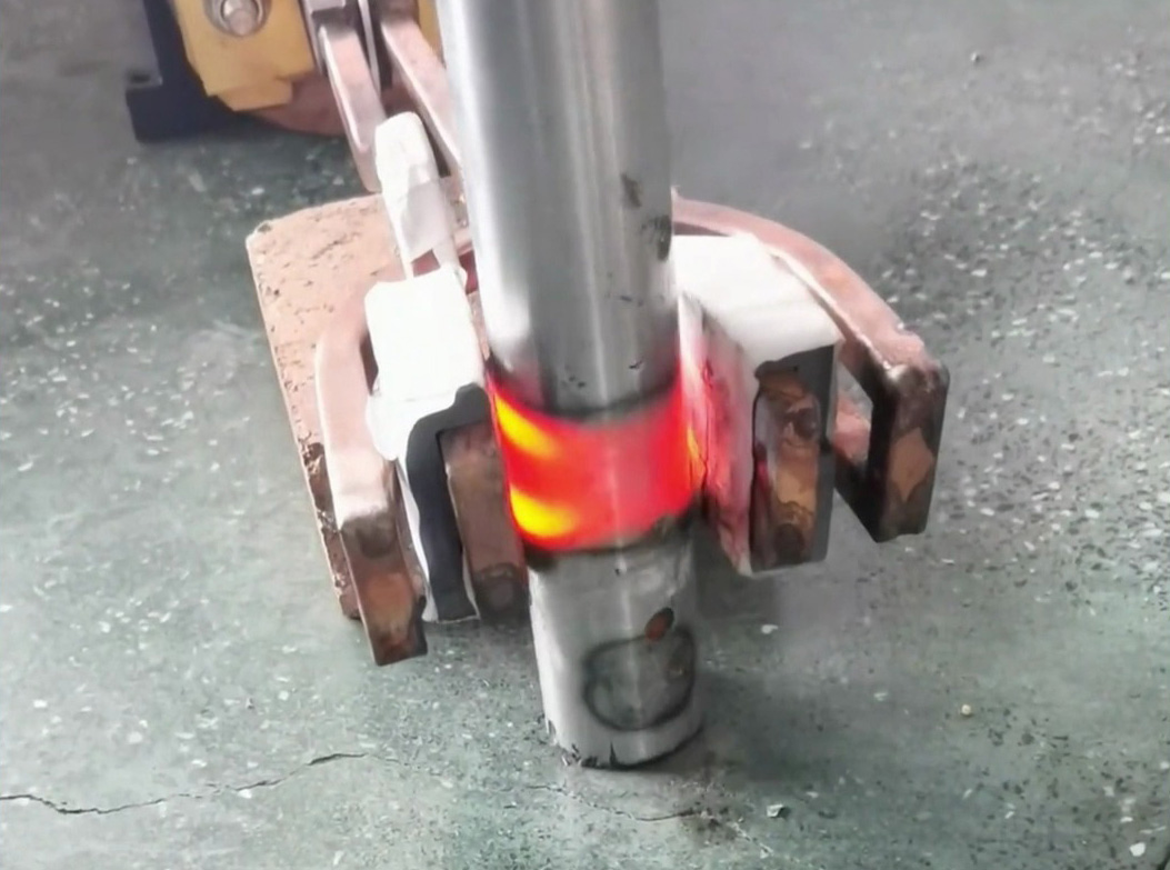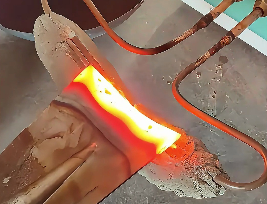 您现在看到的是中频熔炼炉线圈制作过程用高频焊机对线圈固定螺丝进行焊接现场